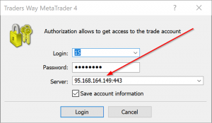 You will be logged in and your platform will always show this IP address as your server name, instead of TradersWay-Live 2.